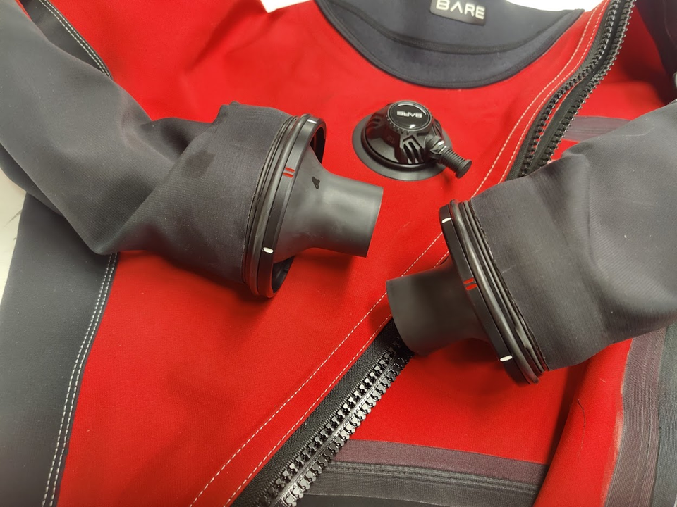The system is designed to work with the two SiTech wrist PU rings that come standard with many drysuits that are manufactured today